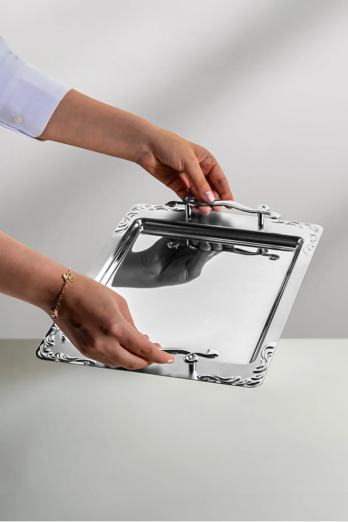 Lalezar Saten Çelik Çay Tepsi